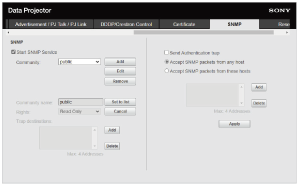 Addボタンを選択して、SNMPパケットを受け取るホストのIPアドレスを追加します。セキュリティ上、IPアドレスを入力しアクセスを制限することを推奨します。