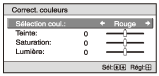 (Haut/Bas) pour sélectionner [Teinte], [Saturation] ou [Lumière], puis ajustez-les selon vos préférences avec la touche