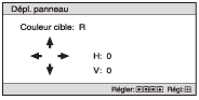 Vous pouvez effectuer le réglage de déplacement et le réglage de zone de la couleur sélectionnée sous [Couleur cible] avec les touches