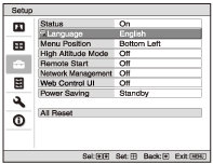 (上/下/左/右)を押して、表示言語を選び、ENTERボタンを押す。