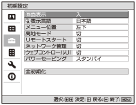 (上/下)ボタンを押して項目を選びます。ENTERボタンを押すと設定が確定し、元の画面に戻ります。