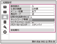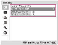 調整/設定できる項目が表示され、現在選ばれている項目が白色で表示されます。