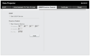 - Cliquez sur l’onglet [DDDP/Crestron Control] et affichez la page [DDDP/Crestron Control].
