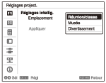 [Réglages project.], réglez [Réglages intellig.] sur [On] et appuyez sur la touche