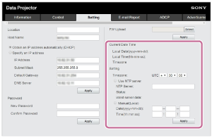 L’ora può essere impostata da [Use NTP server] o [Manual(Local)].