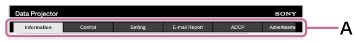 Facendo clic sulla scheda di cambio pagina [Information] e aprendo la pagina [Information], è possibile confermare lo stato corrente del proiettore.