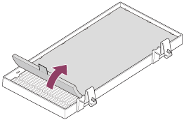 - エアーフィルターカバーからエアーフィルターを取り外すときは、エアーフィルターのつまみを引き上げてください。エアーフィルターをエアーフィルターカバーに取り付けるときはつまみが上に出るように面の方向を注意してください。
