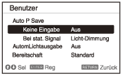 (Auf/Ab) oder die Taste ECO MODE und wählen Sie dann den Modus [ECO] oder [Benutzer].- [ECO]: Jede Einstellung wird auf den Wert gesetzt, mit dem am meisten Strom gespart wird.
