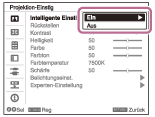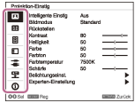 Verschiedene Projektoreinstellungen können in Menübildschirmen vorgenommen werden. Wenn Sie eine Option mit einem Pfeil (
