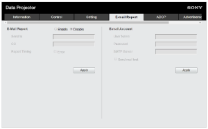 - [Over Light usage time]: envía un informe cuando el tiempo de uso de la fuente de luz supere el tiempo especificado. [Error]: envía un informe cuando el proyector detecta un error.