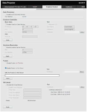 - [Enable Crestron Server Service] : activez ou désactivez la fonction Crestron Server.