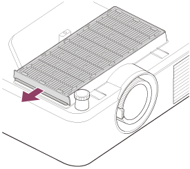 - Se si rimuove il coperchio del filtro dell’aria con il proiettore acceso, si potrebbe toccare involontariamente la ventola interna, con il rischio di provocare lesioni.
