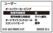 - [ECOモード]を[ECO]、または[ユーザー]の[スタンバイモード]を[低]に設定すると、スタンバイ時にネットワークコントロール機能は使用できなくなります。ネットワークおよびネットワークコントロール機能などによる外部制御を行っている場合には、[ECO]を選択しない、もしくは[ユーザー]の[スタンバイモード]を[低]に設定しないでください。