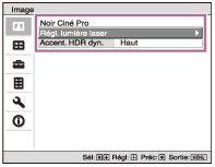 (Haut/Bas) pour sélectionner un élément de menu, puis appuyez sur la touche