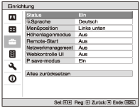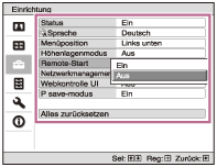 - Die Taste RESET auf der Fernbedienung ist nur verfügbar, solange das Einstell- bzw. Justiermenü ausgewählt ist.
