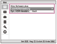 (Eingabe). Die Optionen, die eingestellt werden können, werden angezeigt. Die derzeit ausgewählte Option wird weiß angezeigt.