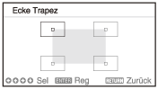 [Installation] - [Ecke Trapez] - [Einstellen] oder [Rückstellen]. -