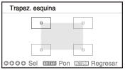 [Instalación] - [Trapez. esquina] - [Ajuste] o [Reiniciar]. -