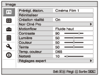 (Entrée). Les éléments pouvant être réglés ou ajustés apparaissent. L’élément actuellement sélectionné est affiché en blanc.