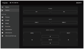È possibile azionare il proiettore dalla pagina [Control] facendo clic sul pulsante di selezione delle pagine [Control].