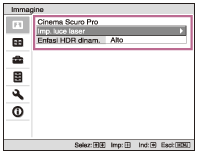 (Invio). Vengono visualizzate le voci che è possibile impostare o regolare. La voce correntemente selezionata è mostrata in bianco.