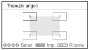 [Installazione] - [Trapezio angoli] - [Regolazione] o [Reimposta]. -